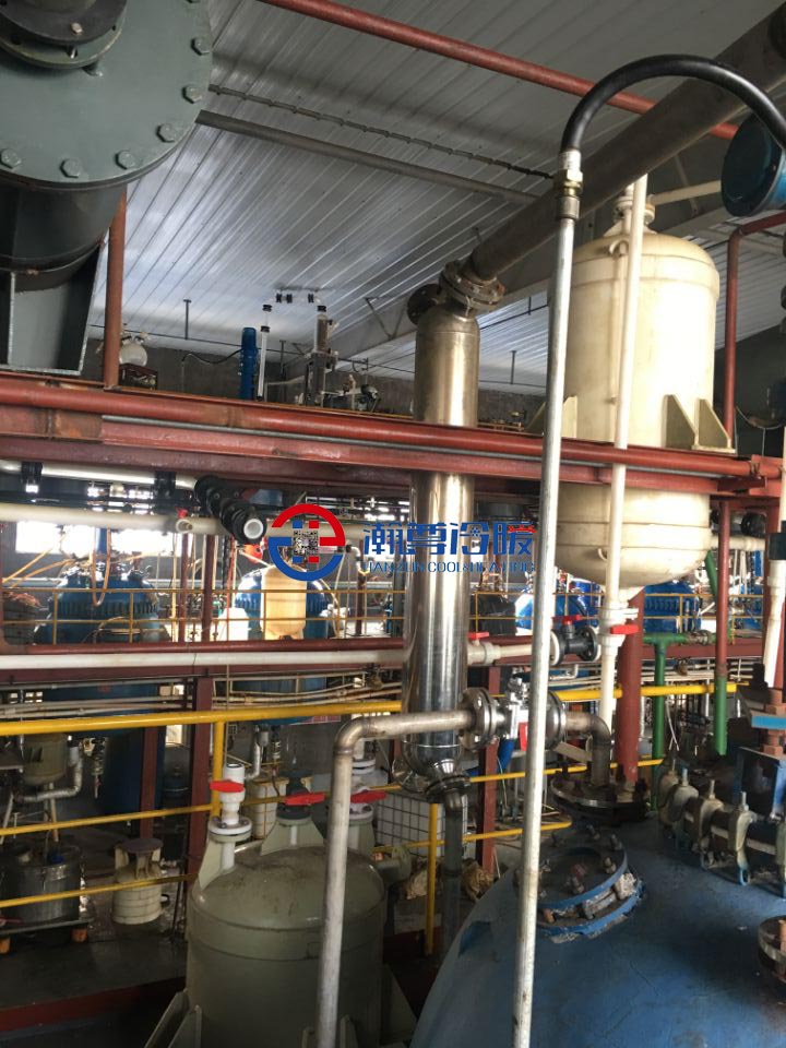 反應釜依次蒸餾多種不同有機物料,選用瀚尊螺旋纏繞管式換熱器代替了原來的螺旋式玻璃熱交換器進行冷凝回收。用 5㎡的瀚尊螺旋纏繞管式換熱器代替了 6m 2 的螺旋式玻璃熱交換器,單位時間內冷凝液的回收量是原來的 2.5 倍,大大提升了生產效率,降低了運營成本。對有腐蝕的工況,采用哈氏合金材質,完美解決了玻璃和石墨熱交換器換熱效率低、不易檢修維護的問題。螺旋纏繞管式換熱器相對于玻璃熱交換器更易于安裝和后期的維護,同時避免了玻璃熱交換器對溫差及壓力的敏感性,不容易發生破裂及爆炸事件,安全可靠,提高了生產的穩定性。