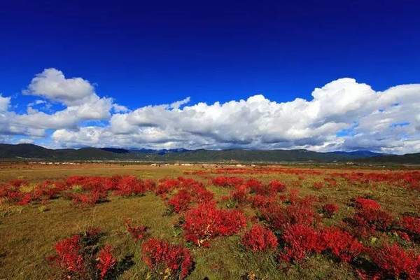 中甸位于云南省迪慶藏族自治州。這里有廣闊而美麗的草原,生長著滿山的莨茗紅葉,色彩濃艷夸張。而被紅浪所包圍的藏民村莊、田野,則顯得非常樸素和安詳。