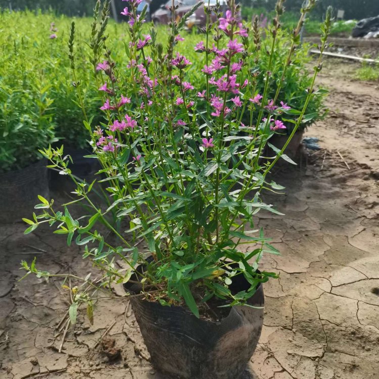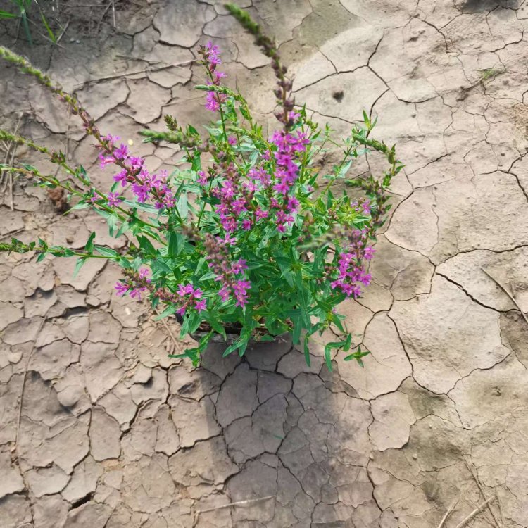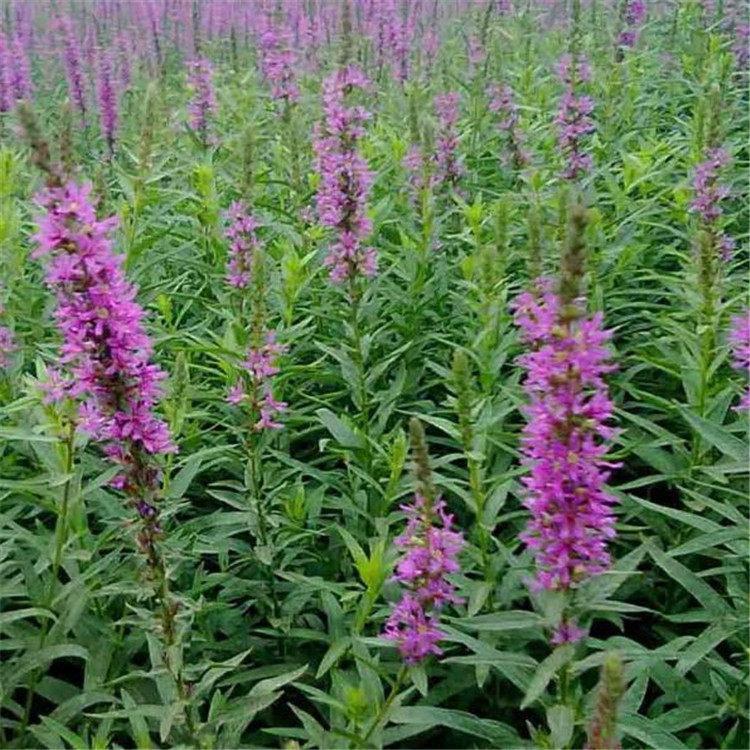 千屈菜又叫水枝柳、水柳、對葉蓮等,多年水生宿根草本植物,植株高約1米,直立生長,主桿上有許多分枝,葉子對生,披針形。葉子長4~6cm,寬1cm左右。總狀花絮長在最上面,長約30cm,花朵簇生。喜歡溫暖濕潤陽光充足的環(huán)境,在我國南方和北方地區(qū)都有野生的,生長在沼澤、湖畔、池塘等淺水地區(qū)。它耐寒性強,在山東、河南、北京等地均可自然越冬,霜降以后地面部分枯死,地下部分進入泥土休眠,在淺水的河邊和低洼潮濕的地方生長態(tài)勢最好,對土壤的要求不嚴。千屈菜的生命力極強,管理也可粗放,栽培的環(huán)境只要保證光照充足、通風良好即可,在生長期要經(jīng)常打頂促使其矮化分蘗,長出豐滿茂密的株型。